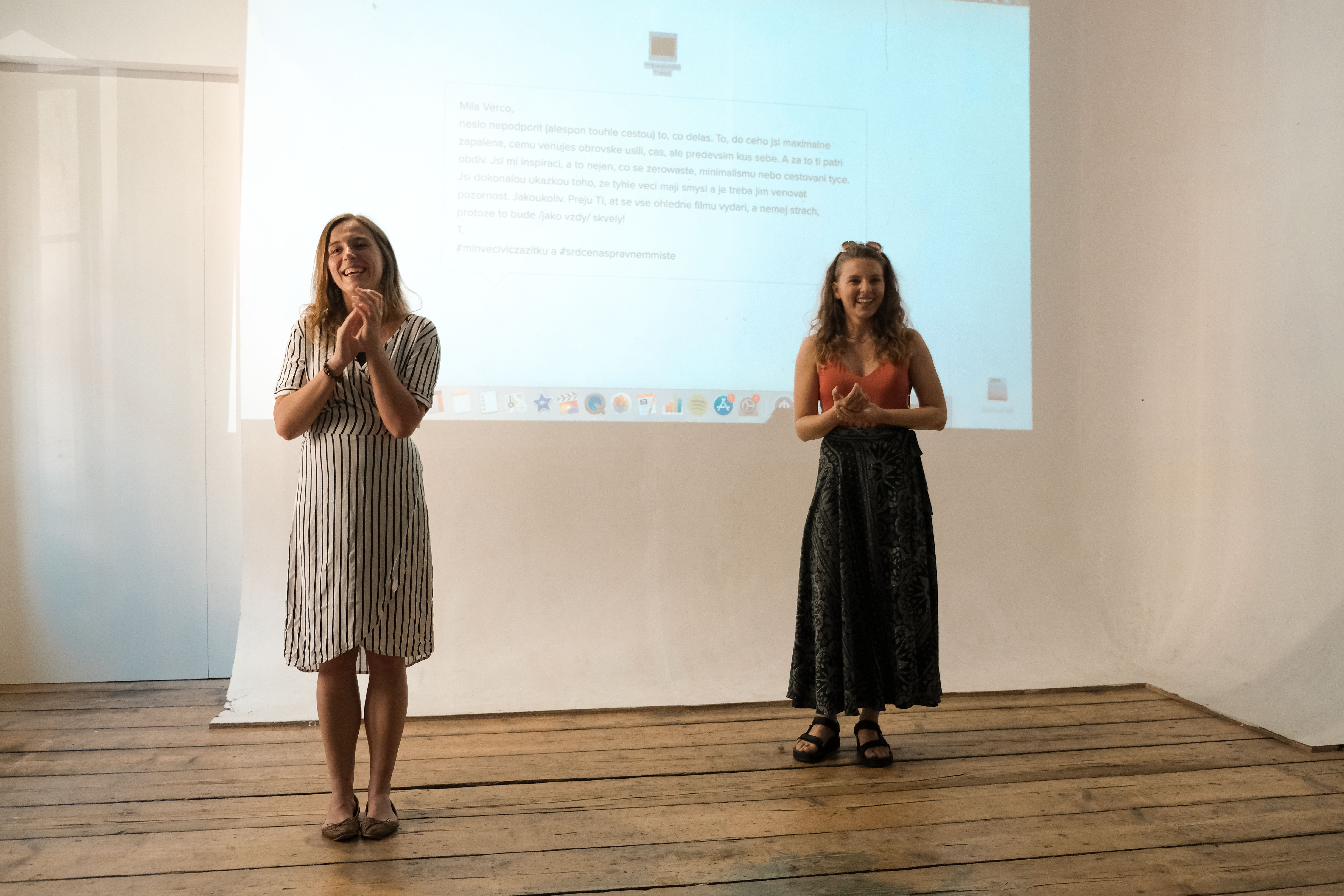 Byl to krásný pocit. Po pár úvodních slovech jsem předala slovo Míše, která seznámila všechny s projektem Čalantika a film mohl začít. Ihned potom, co jsem ho sputila, jsem si musela o patro níž obejdnat pivo a následně pozorovat ze zadu z dálky, jak se sál kouká na něco, na čem jsem tak dlouho pracovala. Je to zvláštní pocit, to vám povim. Jakmile jsem poprvé zaslechla smích, ulevilo se mi.