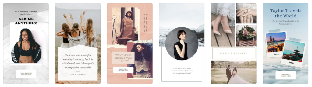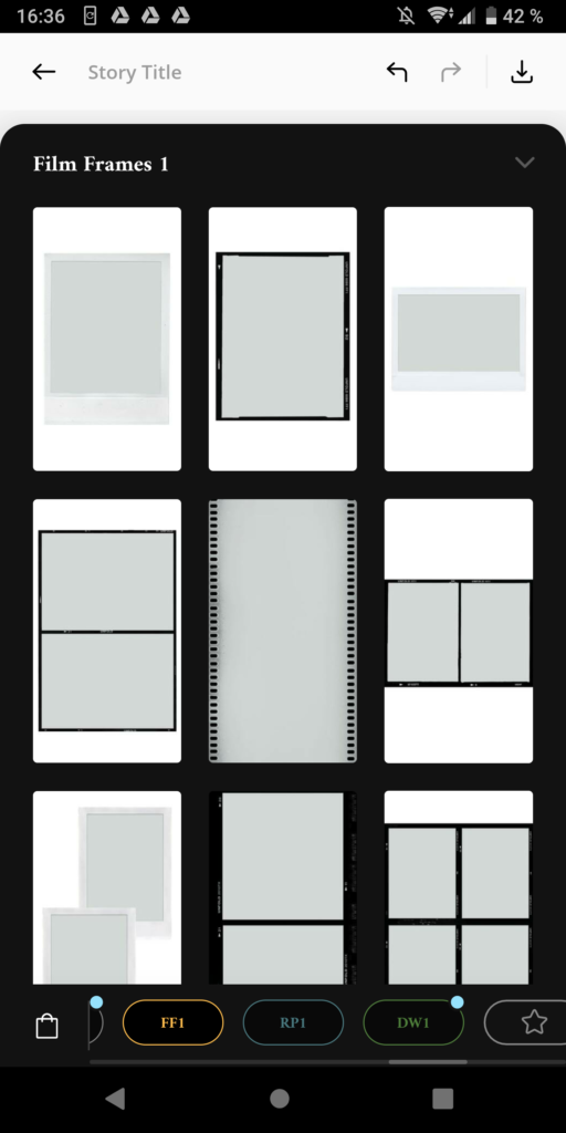 Jako první si nastavíte STORY, kterou si můžete pojmenovat podle sebe a do ní následně vkládáte postupně jednotlivé IG stories. Vytvořit můžete několik po sobě jdoucích stories, které můžete nahrát na Instagram naráz, uložit si je do telefonu nebo nahrát jen jednu z nich. Šablony můžete všemožně střídat. Některé jsou opět volně k použití, jiné je třeba si za nějakých 60 Kč zakoupit. Já nejčastěji používám níže uvedené, které jsou placené.