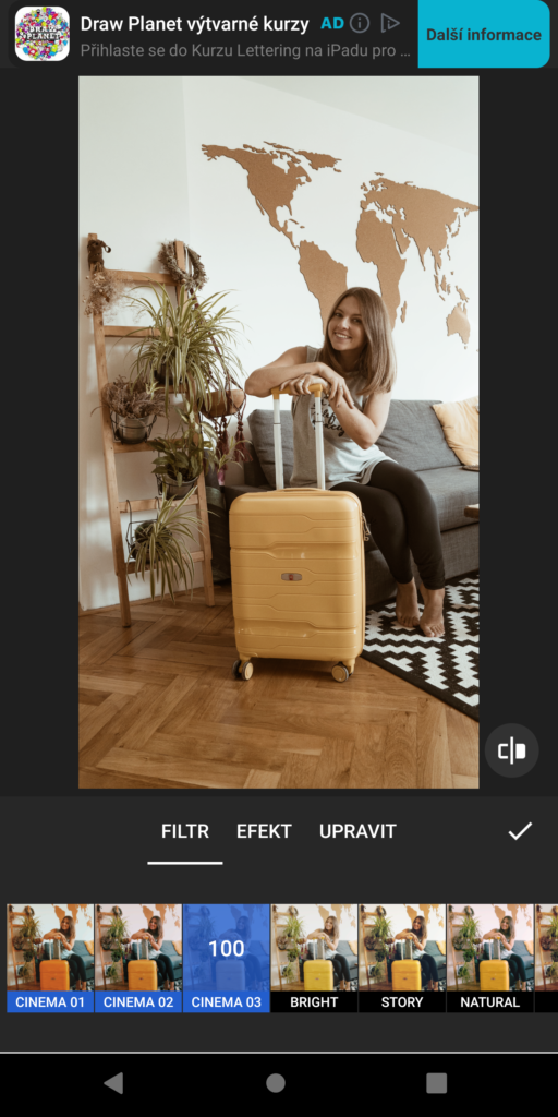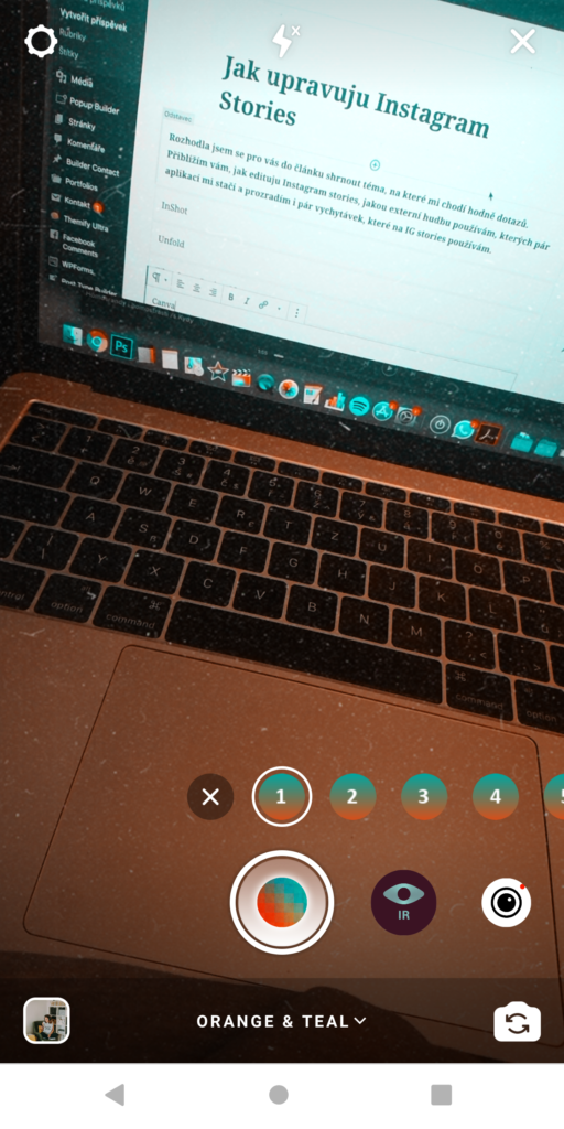Baví mě hrát si s barvou fotek a videí ve stories. A ano, nebaví mě moc jejich nabídka filtrů a úprav. Lokace, místa, ale i fotky interiéru házím do vybraného filtru skrze aplikaci InShot. Už delší dobu jsme si zamilovala konkrétní barvy, které jsem si přibližně za 100 Kč zakoupila skrze jejich nabídku, tzn. že je mám odemčené a mohu je používat. Některé z filtrů jsou volně dostupné, jiné si stejně jako ty mnou vybrané je nutné zakoupit. Zároveň používám tuto aplikaci na střih videí, úpravu hlasitosti, vkládání hudby.