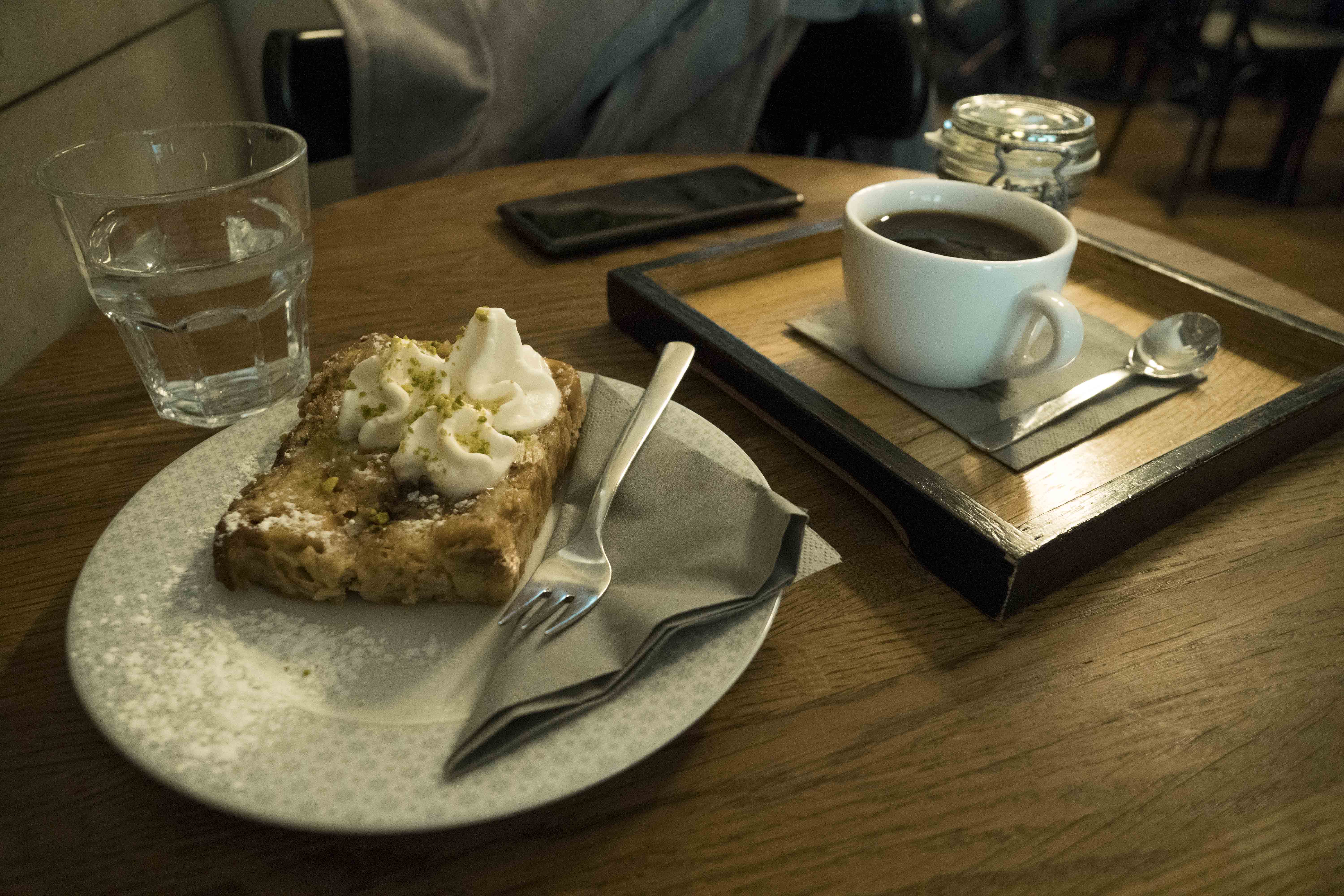 Večer bar, ráno kavárna. Musím říct, že tohle místo mě nadchlo ze všech v článku zmíněných nejvíc. Neskutečně příjemná atmosféra. Hudba už od rána navodí atmosféru berlínského baru. Obsluha byla moc příjemná, úsměv od ucha k uchu. K snídani jsem si dopřála pořádnou dávku filtrovanýho kafe a zkusila ze snídaňového menu lívance. Mňamka. Nemám co vytknout. Už mi jen zbývá zajít sem po půlnoci. ?