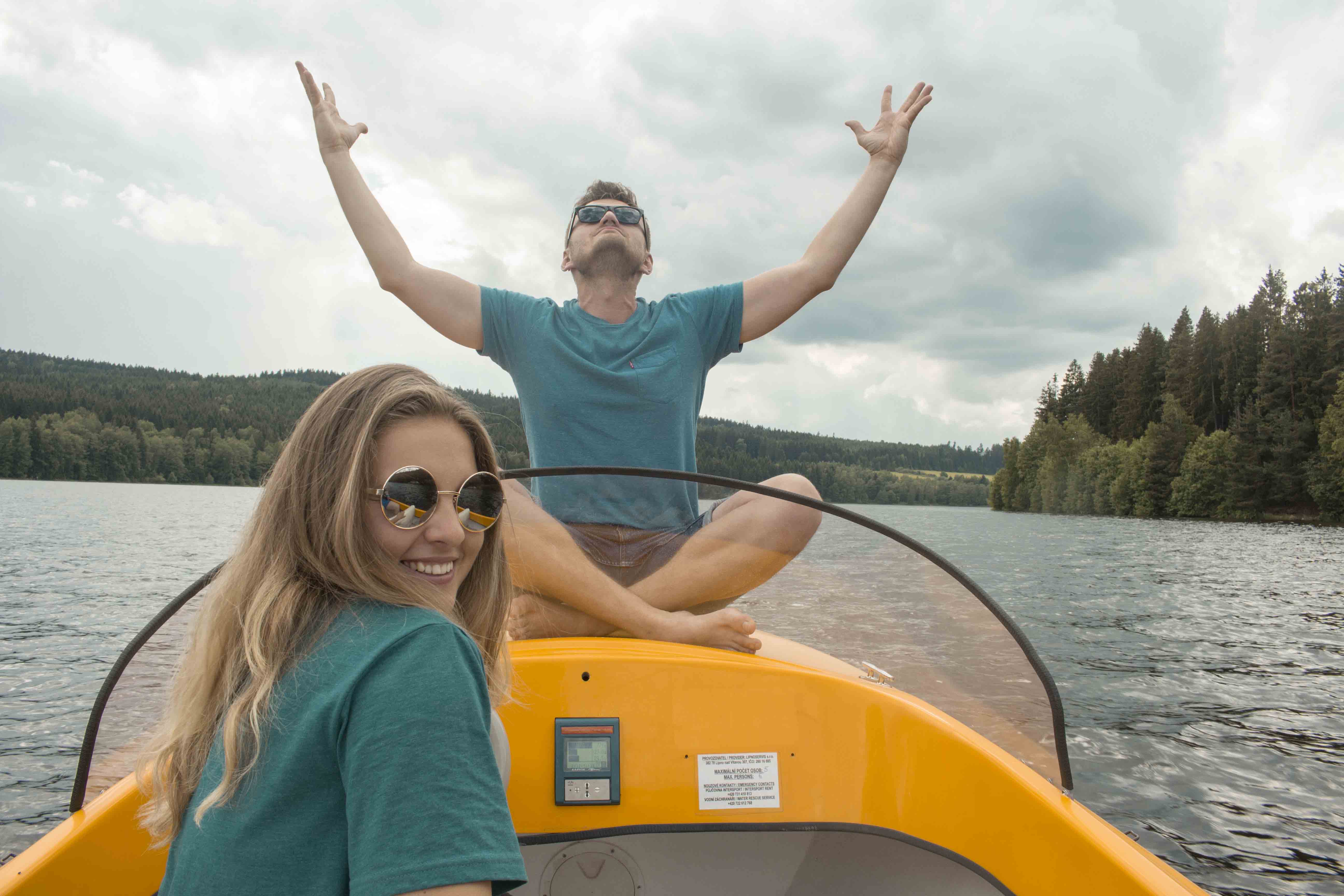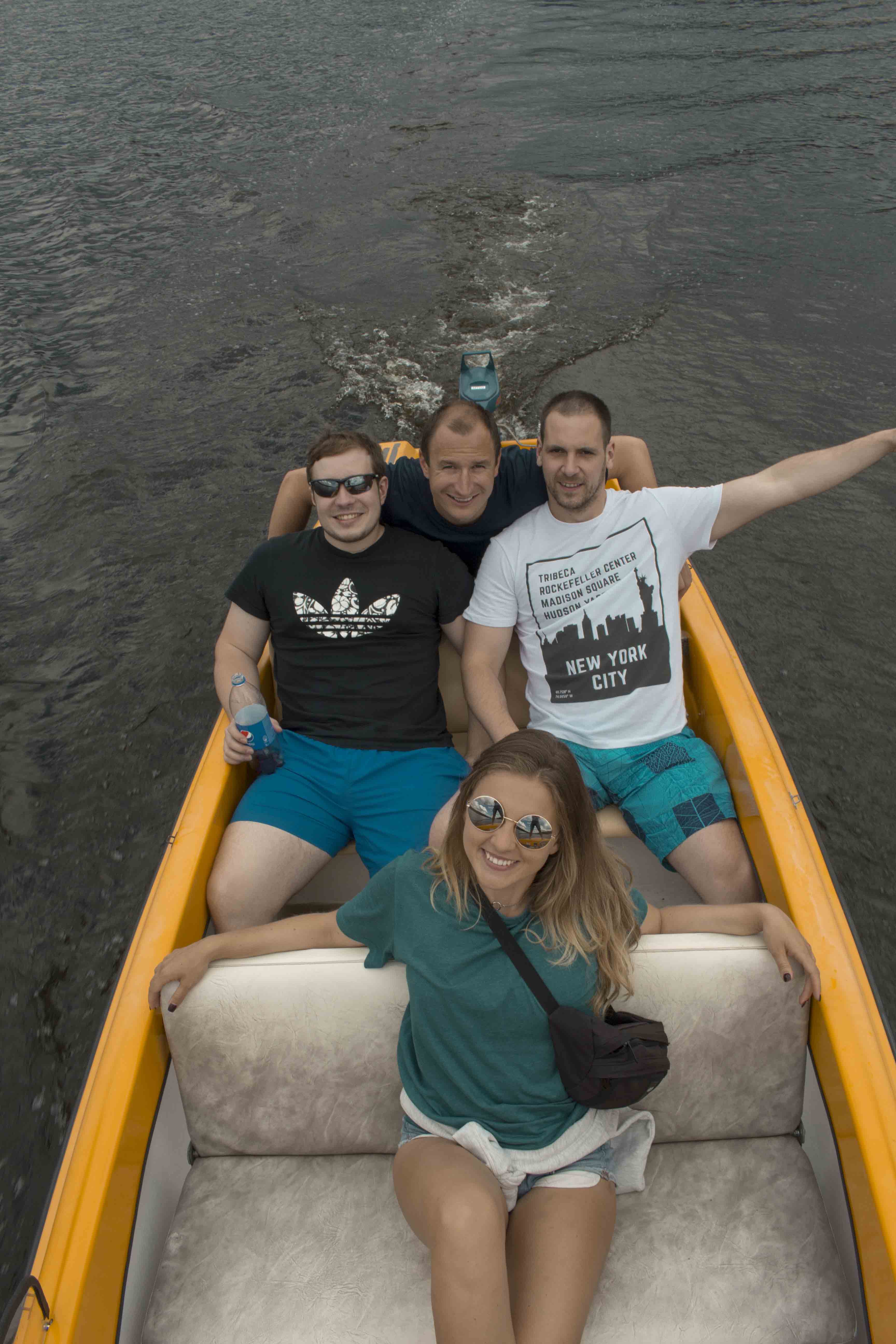 Na oběd jsme zamířili do dle Google Maps nejlépe hodnocené restaurace Slunečná louka. Tam na nás mimo jiné čekali Martinovi kamarádi a zábava mohla začít. Sobota byla ve znamení bujarých oslav, protože přesně ten den Martin slavil narozeniny. Rozhodli jsme se půjčit si člun a projet se po vodní hladině Lipna.