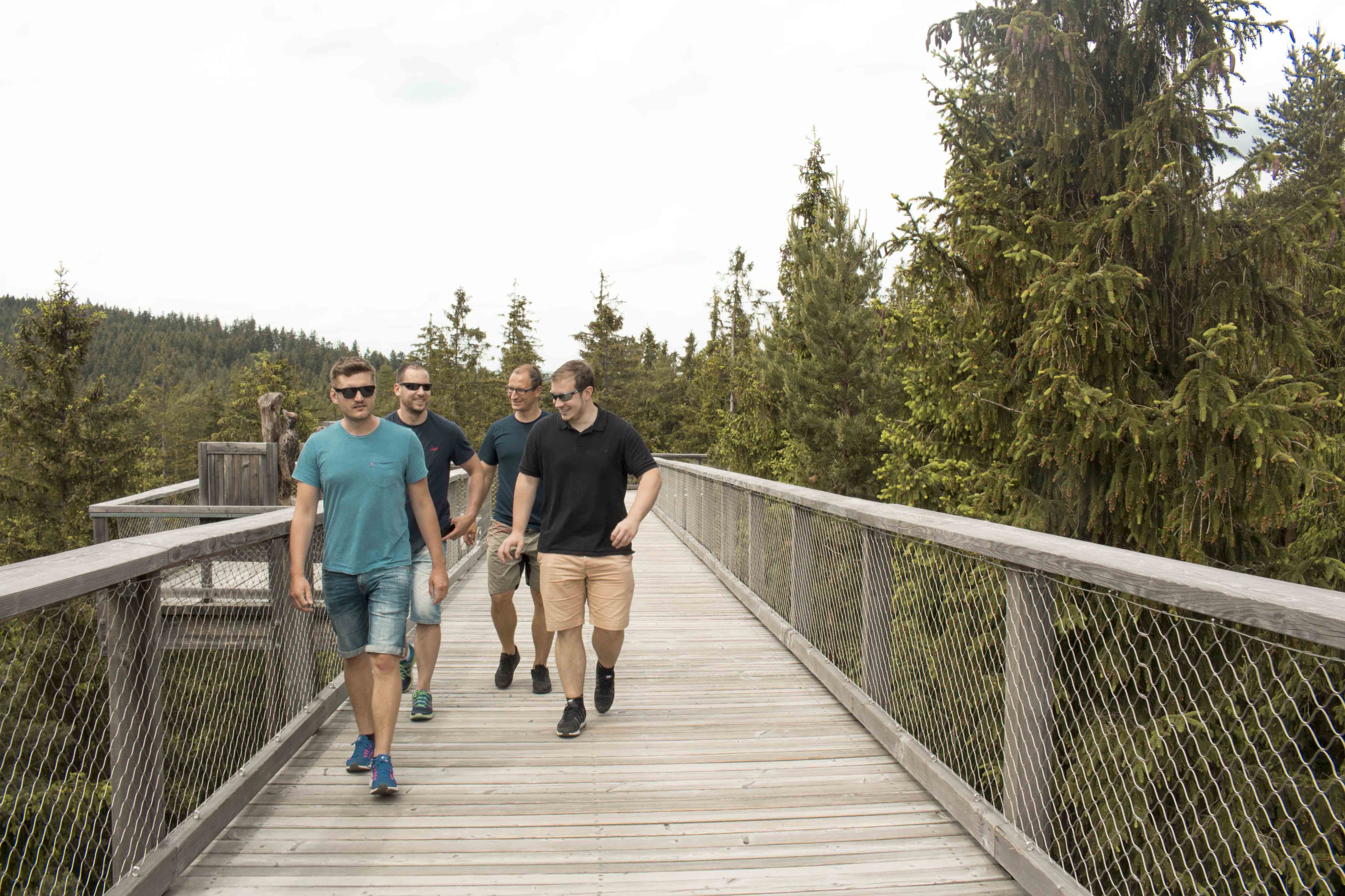 Následující den nás po menším bolehlavu čekalo aktivit mnohem víc a konečně jsme mohli okusit vše, co Lipno nabízí. Lanovkou jsme se vyjeli pokochat a navštívit stezku korunami stromů. Za mě skvělý zážitek. Bavila mě nejen samotná stezka, která je naučná a párkrát zkouší vaši rovnováhu, ale i sešup tobogánem dolů, který si musíte sice na kase při vstupu připlatit, nicméně vážně stojí za to. ?