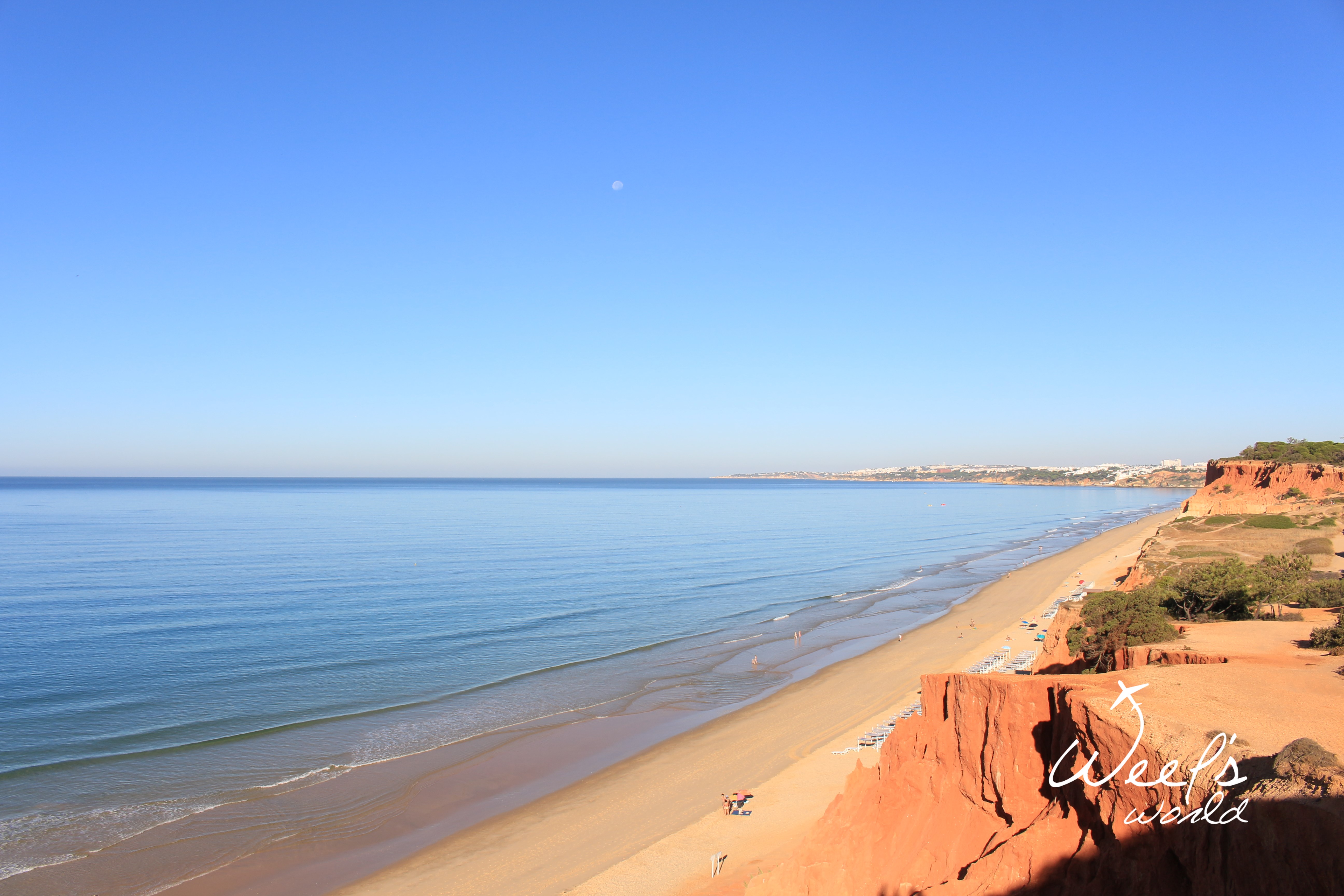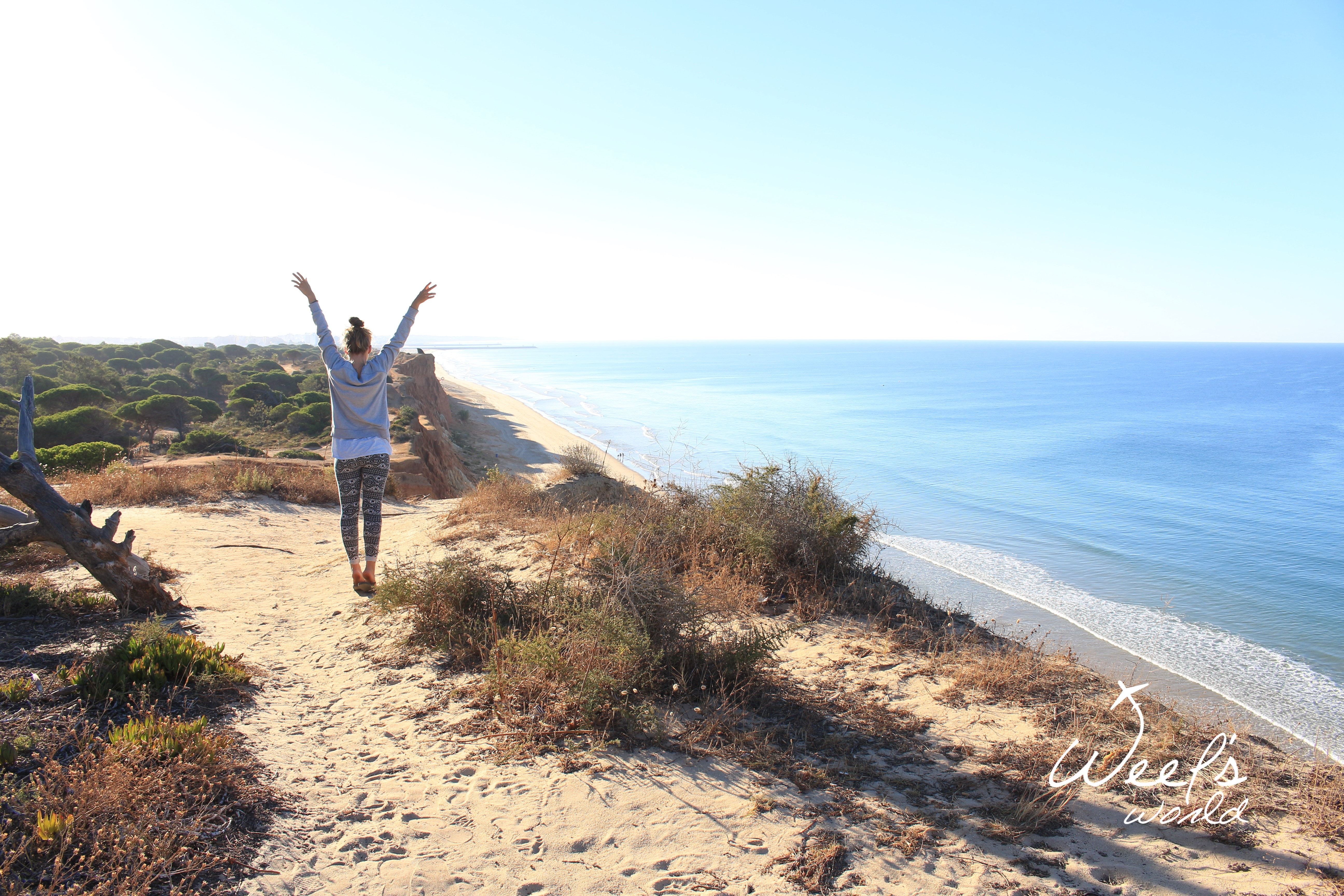 Po našem dni plném objevování jsme potřebovali někde zakempit na noc. Po tmě jsme vjeli na soukromý pozemek, o čemž jsme nevěděli, a přespali přímo na útesech, které se tyčily nad pláží Praia de Falésia. Jednoznačně nejlepší spaní pod hvězdami. Ráno jsme sešli na koupačku dolů k oceánu. Pláž sama o sobě je ojedinělá barvou útesů, které ji lemují – té oranžové se jen tak nenabažíte. ? Pláž navazovala na vstup do hotelu ALFAMAR Beach & Sport Resort – přiznáváme, nenápadně jsme využili jejich toalet v hale. ?