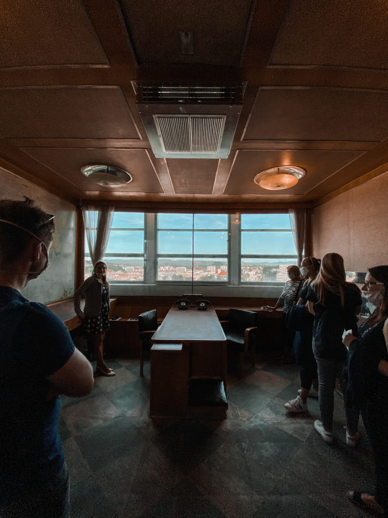 No a právě v prostorách Baťova mrakodrapu na vás čeká jeden unikát. Řeč je o pojízdné kanceláři. Jde v podstatě o výtah, kterým mohl ředitel navštívit kterékoli patro a tím měl možnost bezprostředního kontaktu se svými zaměstnanci. Pokrokové, což? Ale ještě větším překvapením je, že tam měl opravdu všechno – od stolu po umyvadlo. Budete-li se chtít, stejně jako my, ve výtahu projet, mrkněte na web Zlínského kraje pro více informací. Výtah je totiž provozován ve zvláštním návštěvnickém režimu.