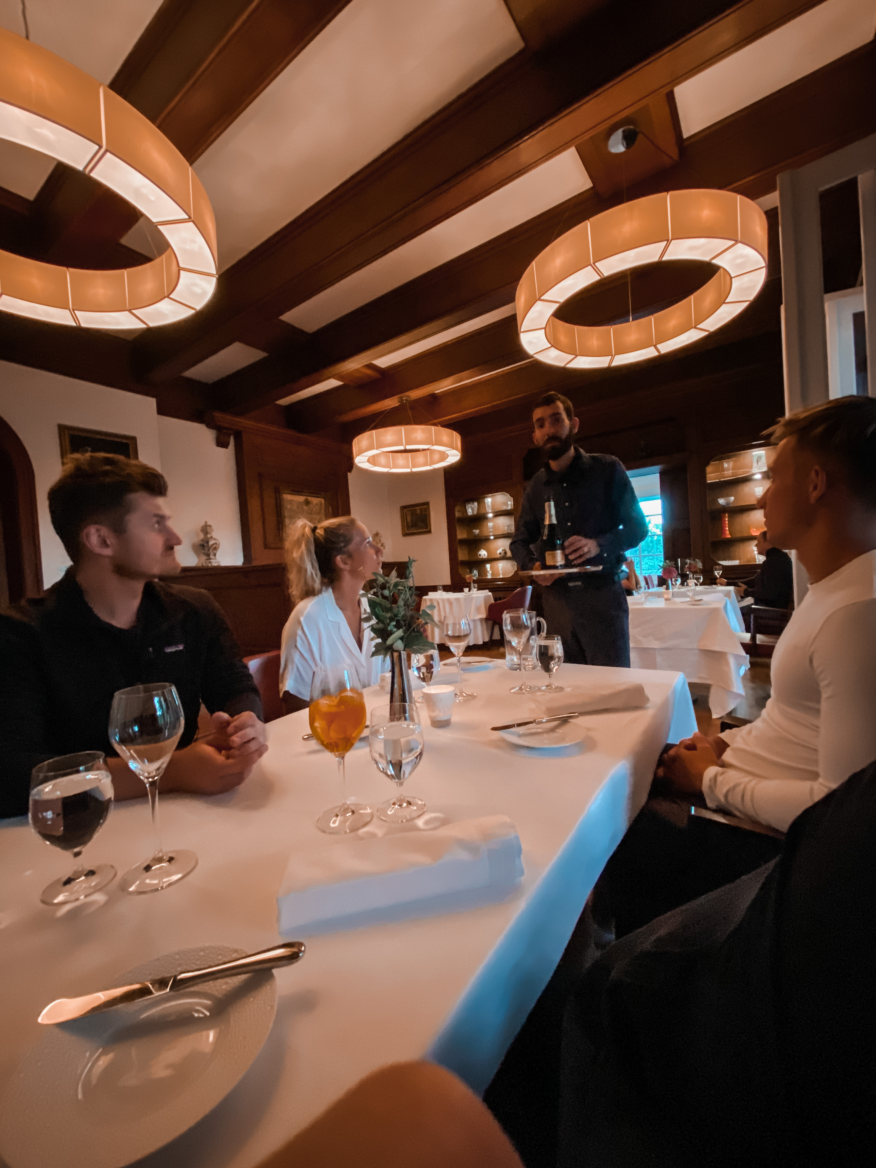 Krásný interiér tedy doplňuje již to, co jsem zmínila, výbornou kuchyni. Degustační MENU nám bylo vždy detailně představeno velmi milým personálem, který nám vyšel vstříc i v momentě, kdy Theo nemohl usnout. Posečkali, až se zadaří, a pokračovalo se dál.