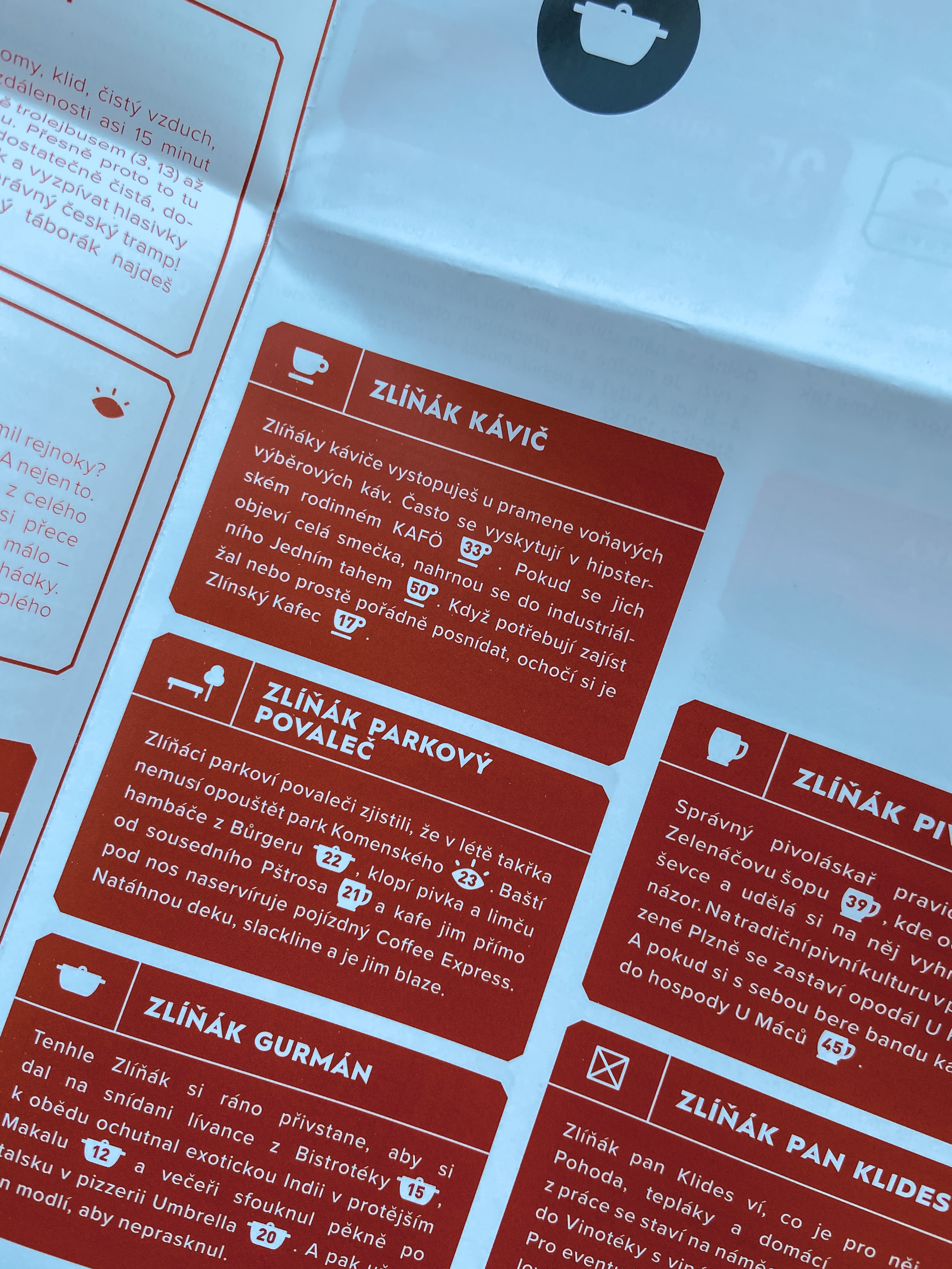 Mapu, kterou si jednoznačně musíte vyzvednout v INFOcentru, vytvořili Zlíňáci pro mladé cestovatele. Najdete v ní všechno důležité – od kaváren, přes velmi vtipný výčet faktů o Zlíně, po základní důležitá historická data a informace. Vše je psáno jasně, stručně, vtipně a na pohodu.